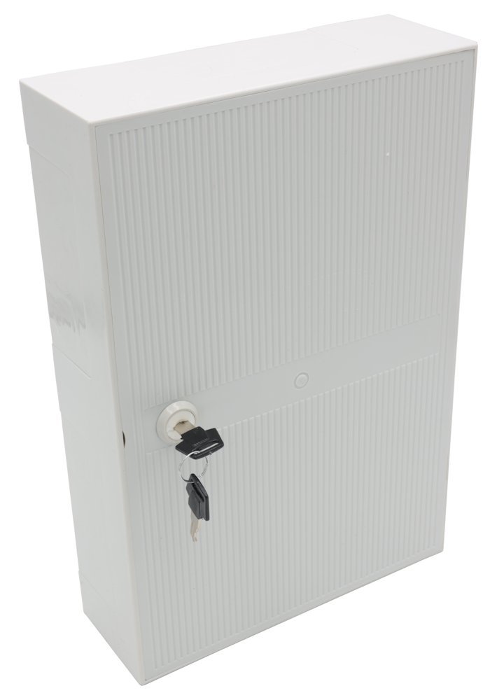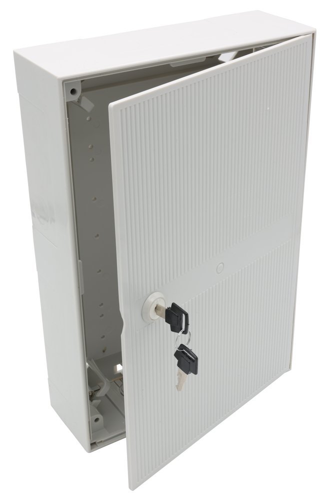 Plastová rozvodná skříňka určená pro vnitřní instalace. Vybavena uzávěrem na plastový šroub a odnímatelnými bočnicemi s průchody pro kabely. Vhodná pro montáž na zeď nebo do zdi (zapuštěná montáž).