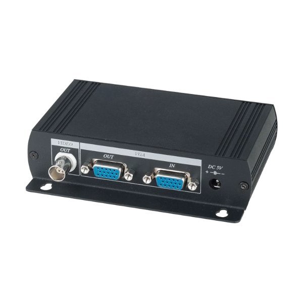 Převodník VGA na analogový kompozitní signál PAL. Průchozí VGA port (1x in/1x out), 1x BNC výstup. Rozlišení do 1024x768. Nezávislé na software. Regulace jas/kontrast/saturace/barevnost.