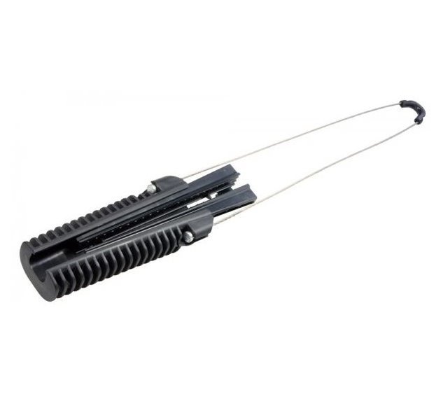 Klínová kotva pro rychlou a bezpečnou fixaci nadzemních optických kabelů do převěsu max. 70 m. Upínací systém nevyžaduje použití nářadí a výrazně zjednodušuje a zrychluje montáž. Kotva je určena pro kabely o průměru pláště 6 - 9 mm. Vyrobena je z UV odolného termoplastu a nerezové oceli (lanko). Minimální nosnost činí 300 daN, tedy cca 300 kg.