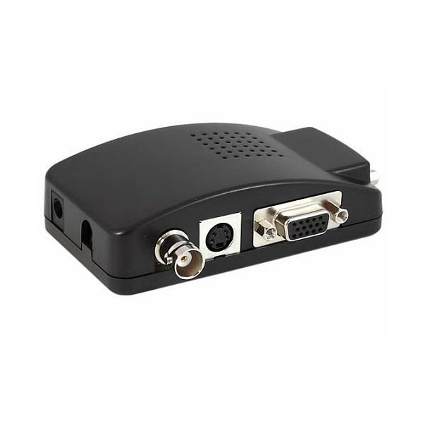 Převodník video na VGA. Umožňuje připojit VGA monitor k zařízení s cinch PAL/NTSC výstupem nebo S-Video výstupem.