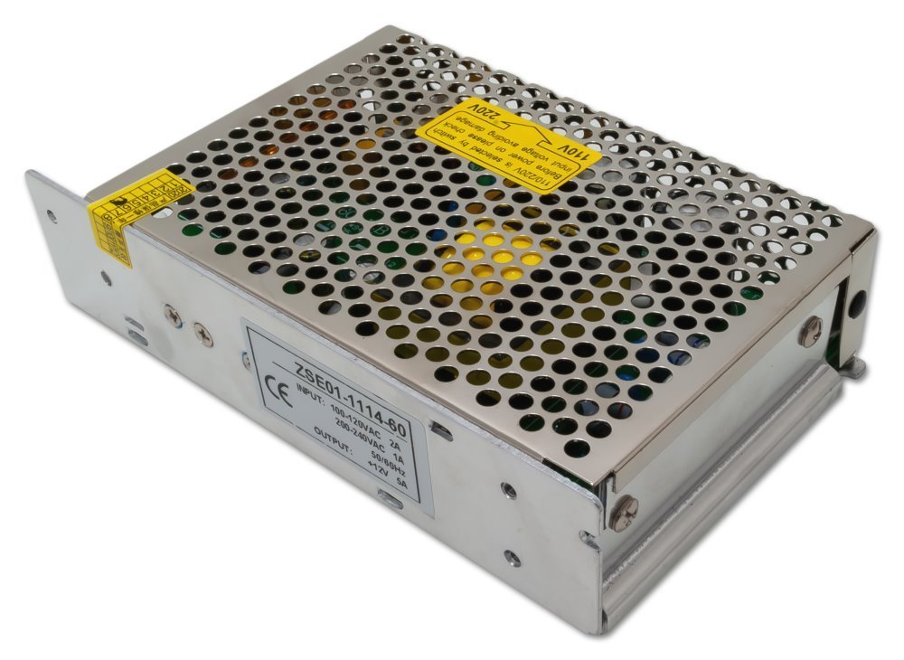 Stabilizovaný napájecí zdroj s nastavitelnou hodnotou výstupu 11–14 V DC (max. proud 5 A) a výkonem 60 W. Určený pro vestavbu či přímou montáž na zeď. LED signalizace funkčnosti portů.