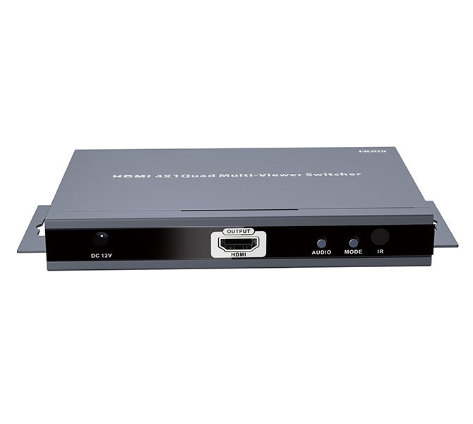 HDMI přepínač (multiviewer/kvadrátor) ze čtyř vstupů na jeden výstup, zobrazení všech vstupů na jednom HDMI výstupu. Rozlišení až 1080p, dálkový ovladač, podpora HDCP 1.3a, napájení DC 12 V.