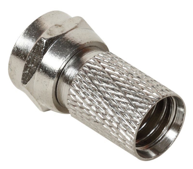 Šroubovací konektor F, samec, pro kabely RG59. Niklovaná mosaz.