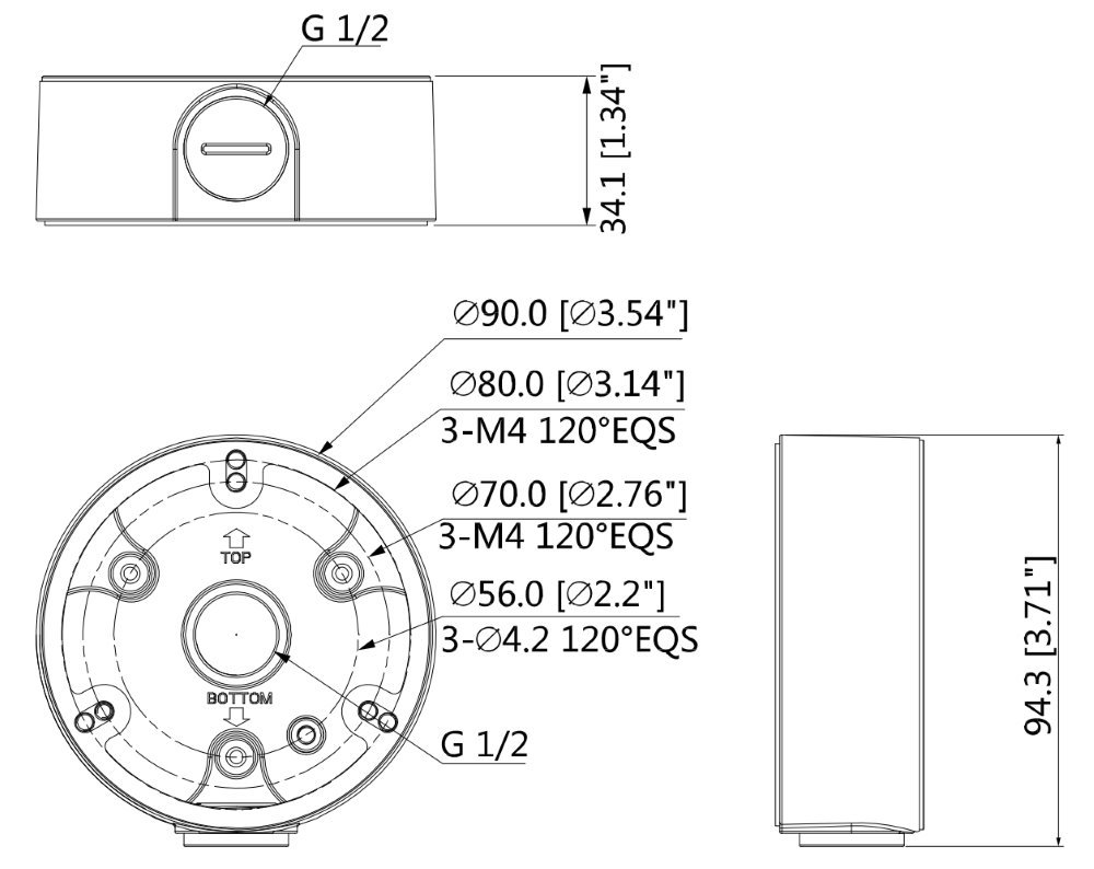 Pro instalaci HFW(RP-VF) a HFW(RP-Z) bullet kamer značky Dahua. Kabel je protažen nahoru nebo do strany. Použitelný v kombinaci s držákem na sloup PFA150.
