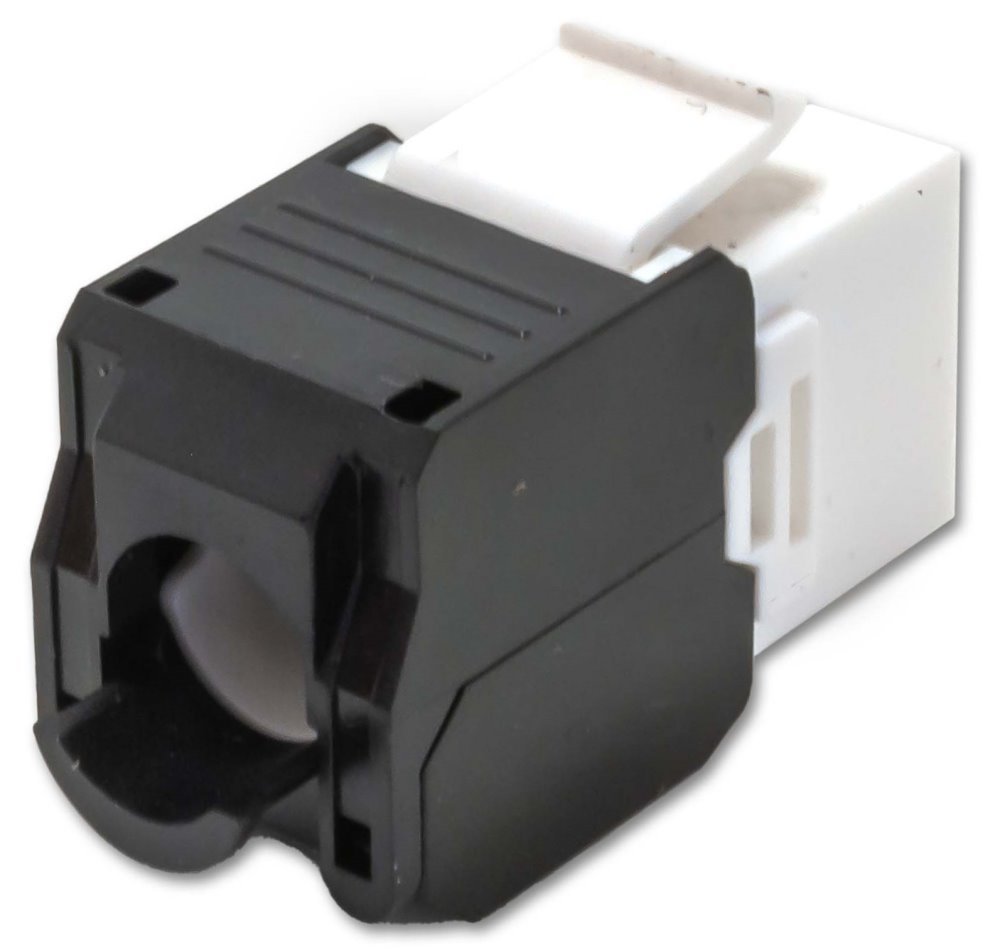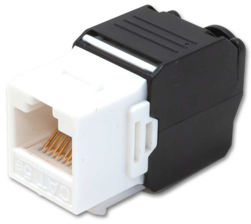RJ-45 keystone jack pro připojení síťových komponentů pro ethernet Cat5e s dvojitou klapkou.
