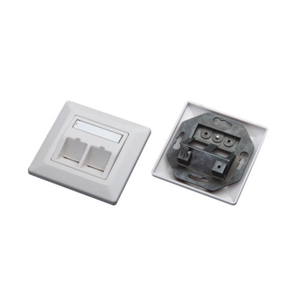 Neosazená zásuvka 2x RJ-45 pro konektory Cat5e. Orientace pod úhlem 45°. Instaluje se do běžných elektroinstalačních krabic pod omítku. Barva slonová kost.