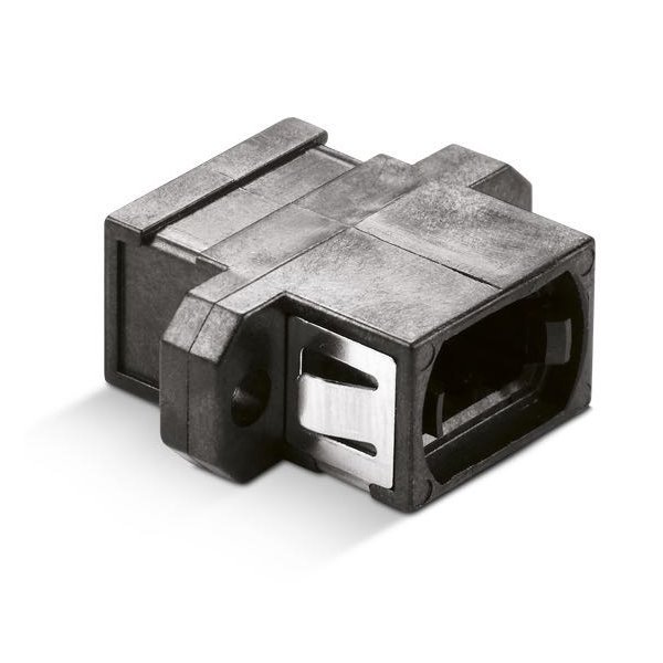 Adaptér MPO pro instalaci do optického rozvaděče. Pro singlemode i multimode vlákna, bez omezení na počet vláken v MPO konektoru. Barva černá. Klíče adaptéru jsou proti sobě otočeny, tj. na jedné straně je orientován nahoru, na druhé straně má orientaci dolů. Adaptér je určen pro vložení na panelu do otvoru pro simplexní konektor SC (tzv. "SC footprint", totéž jako LC duplexní otvor). Má tvarovou západku do otvoru a příruby pro připevnění na šroubky.