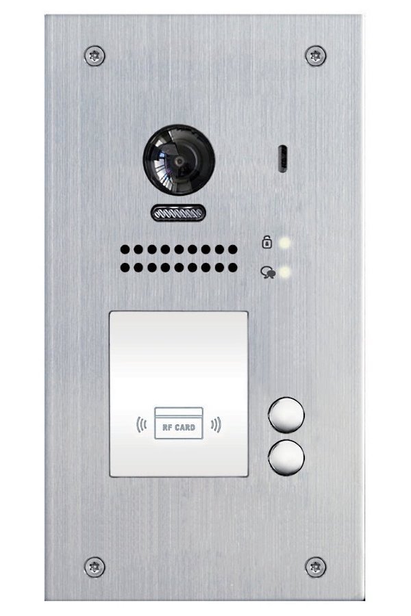 Dveřní stanice, pro D2, 2x zvonek, RFID čtečka, CCD 170st, 2drát, IP54, zapušt. montáž, 1 zámek