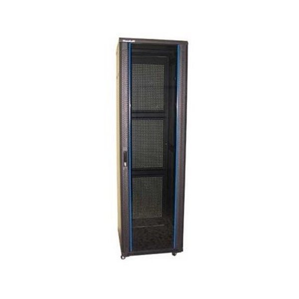 Rozvaděč, 19", stojanový, rozebíratelný, výška 42U, 600x600, skleněné dveře, kouřové sklo, perforovaná záda, černý