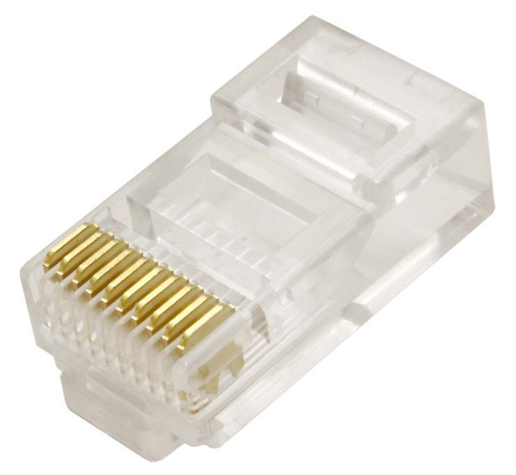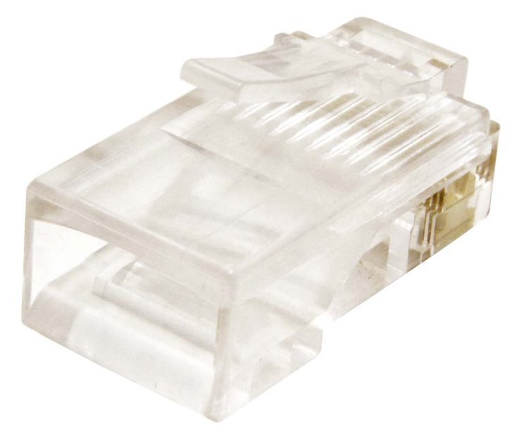 Nestíněný transparentní konektor RJ-50 (RJ-69) vhodný pro zakončení strukturované kabeláže. Určený k nalisování (krimpování) na kulatý kabel (10 pozic/kontaktů) a pro max. průřez kabelu AWG 24.
