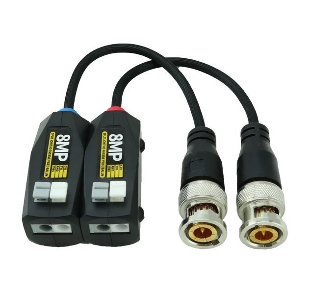 Pasivní balun s rychlosvorkou umožňující přenos video signálu, pro přenos postačuje kabeláž Cat5. Pasivní přizpůsobení mezi 75 Ohm výstupem/vstupem systémů pro přenos videa a 100 Ohm impedancí kabelového vedení UTP. Využívá dva vodiče UTP kabelu. Cena za pár.