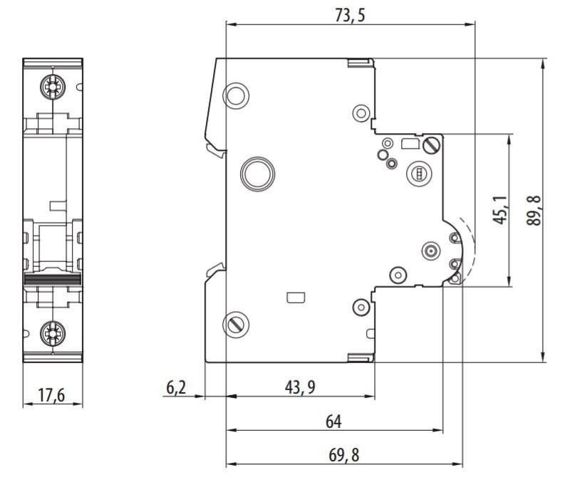 1pólový jistič (charakteristika B) pro spolehlivou ochranu kabelů a vedení před přetížením a zkratem v obvodech s vyššími zkratovými proudy a vypínací schopností 6 kA.
