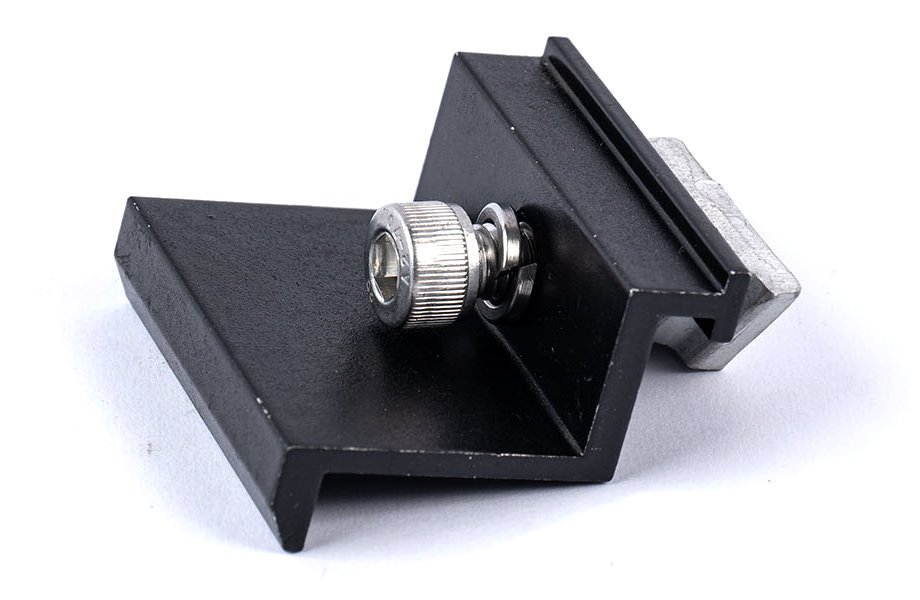Držák (koncový) pro snadné uchycení prvního a posledního solárního panelu s 30 mm rámem na hliníkovou lištu řady SC. Použijte vždy 2 držáky na každé straně panelu. Pokud máte instalováno více panelů, použijte středový držák, který se umísťuje mezi panely. Upevňuje se pomocí imbusového klíče M8.