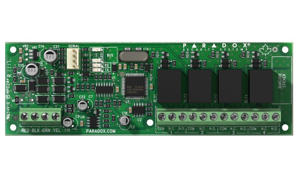 Modul PGM výstupů, připojitelný na BUS sběrnice ústředen SPECTRA SP, MAGELLAN MG nebo DIGIPLEX EVO. Modul slouží k rozšíření o 4 programovatelné výstupy v provedení relé. V systému DIGIPLEX EVO je počet instalovaných PGM modulů omezen maximálním počtem PGM výstupů (250).