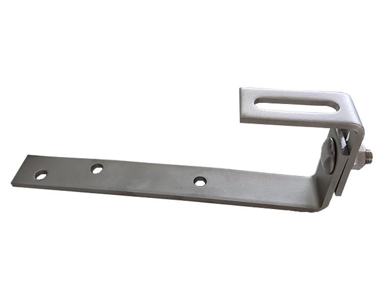 Nastavitelný střešní hák pro připevnění solárních panelů na šikmé střechy s taškovou krytinou (břidlicové střechy). Jeho nastavitelná konstrukce může montážníkům pomoci při správné instalaci a není třeba měnit háky, pokud jsou některé vzdálenosti špatně změřené. To může ušetřit čas a náklady.