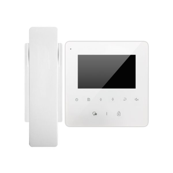 Komfortní barevný TFT 4,3" bytový monitor s rozlišením 480 × 272 px, sluchátkem a dotykovými tlačítky. Monitor je určen pro 2drátový domovní systém a má kompletní CZ rozhraní.