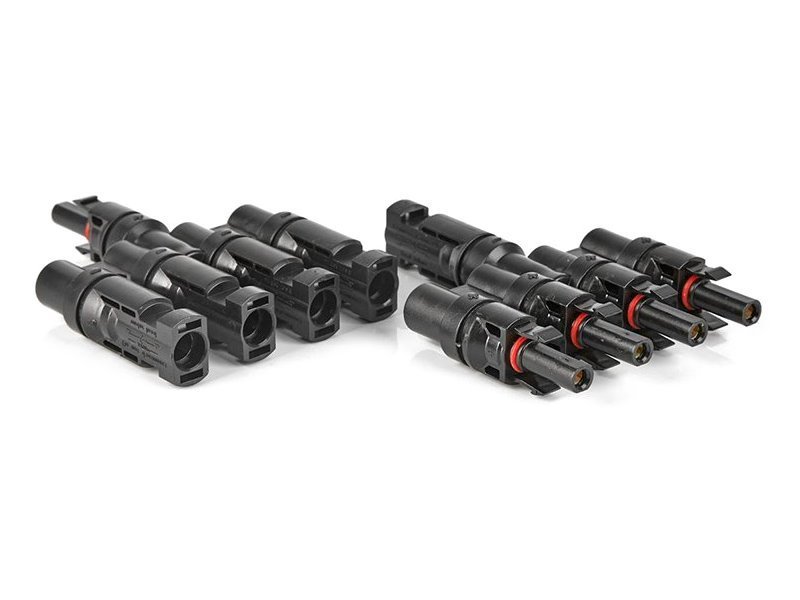 Rozbočovací solární T konektor typu MC4 určený pro paralelní propojení solárních panelů. Je vyroben z vysoce odolného plastu a je opatřen gumovými těsnícími vložkami. Vhodný i pro venkovní aplikace.
