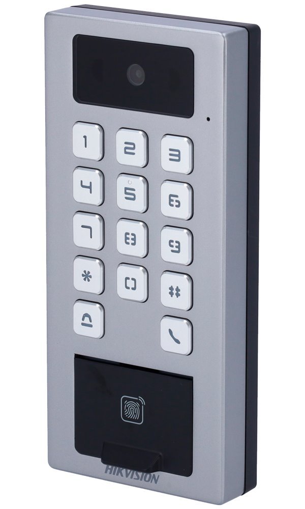 Elegantní IP dveřní interkom s plnohodnotnou klávesnicí, čtečkou karet/čipů s technologií Mifare (13,56 MHz) a čtečkou otisků prstů. Z další výbavy je k dispozici 2 Mpx kamera a slot pro SD kartu s kapacitou až 256 GB. Připojení je realizováno klasicky skrze TCP/IP protokol s rychlostí 10/100 Mbps (RJ-45) + podpora SIP nebo pomocí Wi-Fi připojení. Jednotka je vhodná i pro venkovní využití díky krytí dle IP65 + antivandal odolnosti dle IK09.