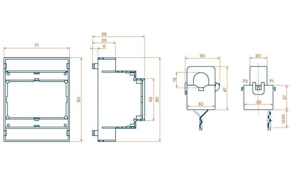 - Měřené veličiny: činný výkon, energie, AC proud, AC napětí