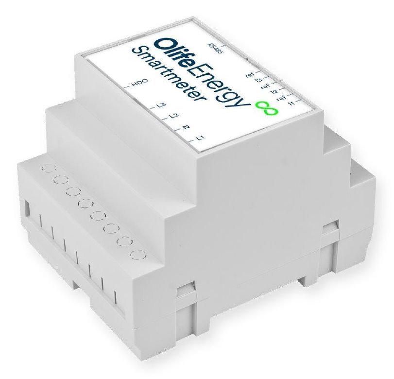 SmartMeter měří aktuální spotřeby objektu nebo jeho dílčího okruhu, vyhodnocuje dostupný příkon pro nabíjení EV a reguluje maximální nabíjecí proud stanice. OlifeEnergy SmartMeter řídí právě jednu nabíjecí stanici OlifeEnergy na jedné přípojce (jeden nebo dva nabíjecí body podle modelu nabíjecí stanice). Jednotka se umísťuje do hlavního rozvaděče na DIN lištu. Proud je měřen nepřímo pomocí měřících transformátorů s děleným jádrem. Komunikace se stanicí probíhá po sériové lince pomocí sběrnice RS485 nebo volitelně pomocí bezdrátového modulu.