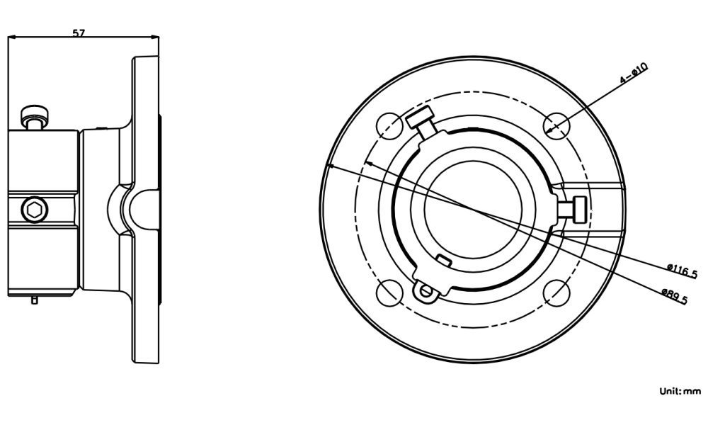 Stropní držák pro speed dome kamery Hikvision (nelze použít pro DS-2AE-714). Zeď musí unést více než 3krát větší hmotnost, než je celková hmotnost kamery a držáku.