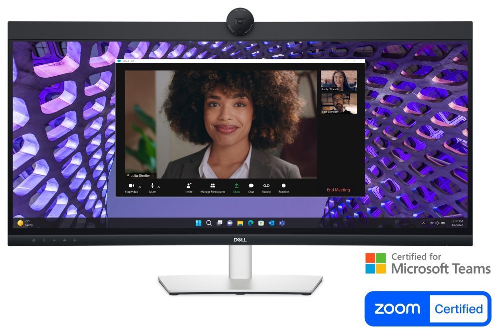 Prohnutý LED monitor s úhlopříčkou 34,14" disponující rozlišením 3440 × 1440 obrazových bodů s poměrem stran 21 : 9. Nabízí jas 300 cd/m2, kontrastní poměr 1000 : 1, dobu odezvy 8 ms a pokrytí 99 % sRGB barevné palety. Pozorovací úhly 178° horizontálně i vertikálně zaručí skvělou viditelnost z jakéhokoliv úhlu. K dispozici je ethernetový RJ-45 port, tři porty USB 3.0 (1× podpora Battery Charging 1.2) a dva porty USB-C, z nichž jeden kromě vysokorychlostního přenosu videa a dat umožňuje napájení připojených zařízení až do 90 W. Dále je vybaven konferenční 4Mpx webkamerou, IR kamerou s podporou Windows Hello, stereo reproduktory s celkovým výkonem 10 W a dvojicí mikrofonů. Monitor je certifikován pro použití s platformami Microsoft Teams a Zoom. Zajisté potěší také otočný podstavec a výšková stavitelnost.