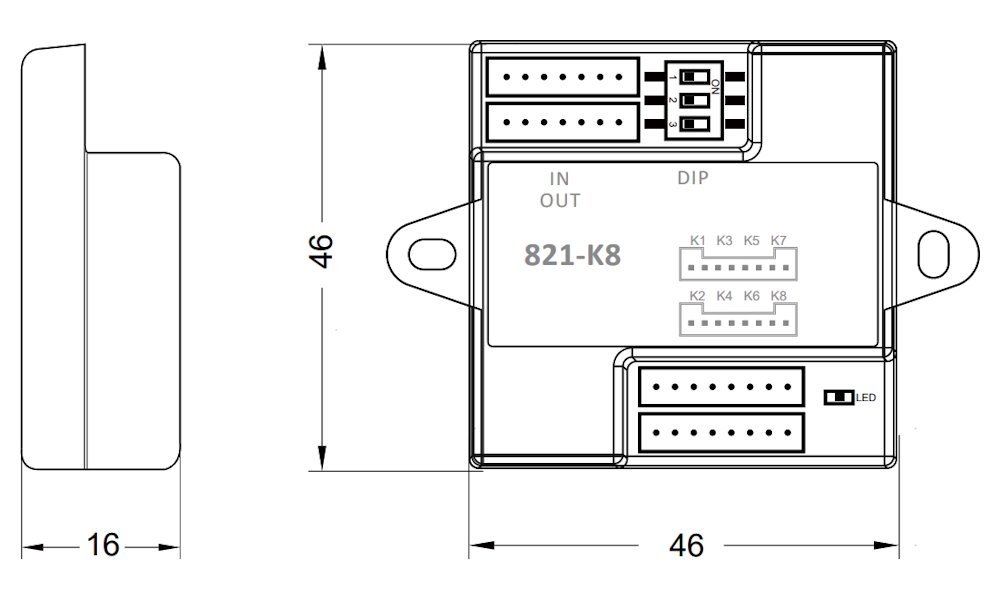 - DIP přepínač pro konfiguraci