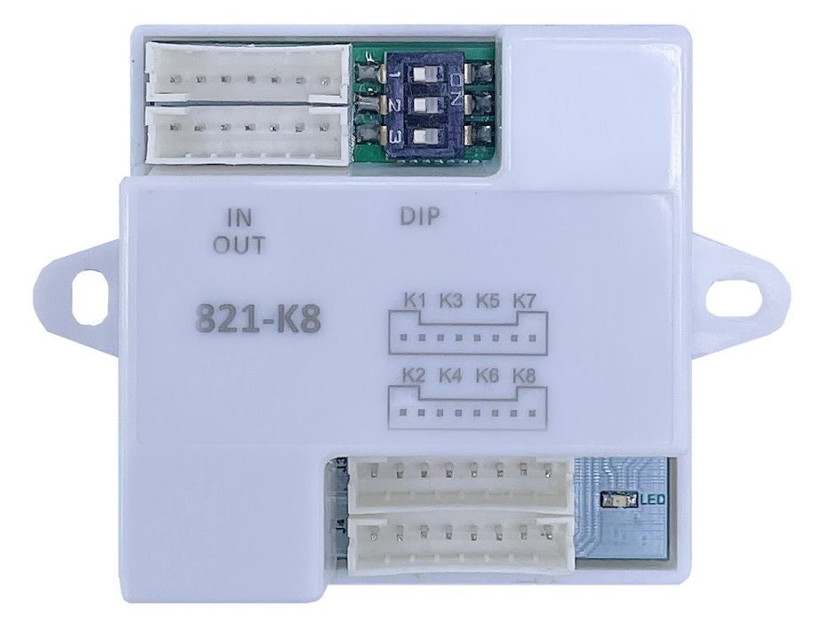 K modulu lze připojit 8 libovolných tlačítek (zvonků). K jedné dveřní stanici lze připojit až 8 těchto modulů, tedy 64 vlastních zvonků.