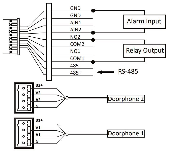 Rozhraní: 2× alarm vstup, 2× alarm výstup, 1× RS-485, 2× 4drátové rozhraní, 2× ovládání zámku (relé), 1× slot pro microSD kartu (max. 128 GB)