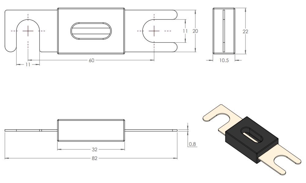 Pojistka ANL 500A/80V vhodná pro 48V zařízení/systémy.