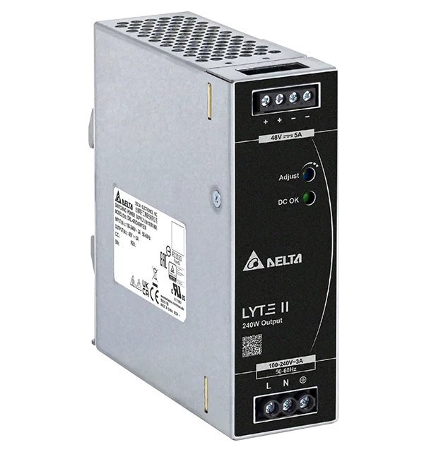 Napájecí zdroj pro instalaci na DIN lištu s výstupním napětím DC 48 V a výkonem až 240 W. Jedná se o cenově dostupný napájecí zdroj vhodný pro obecné průmyslové aplikace. Může pracovat v režimu konstantního proudu, takže je vhodný pro indukční a kapacitní zátěže. Nabízí účinnost až 90,5 % a je certifikován podle bezpečnostních norem IEC/EN/UL 62368-1.