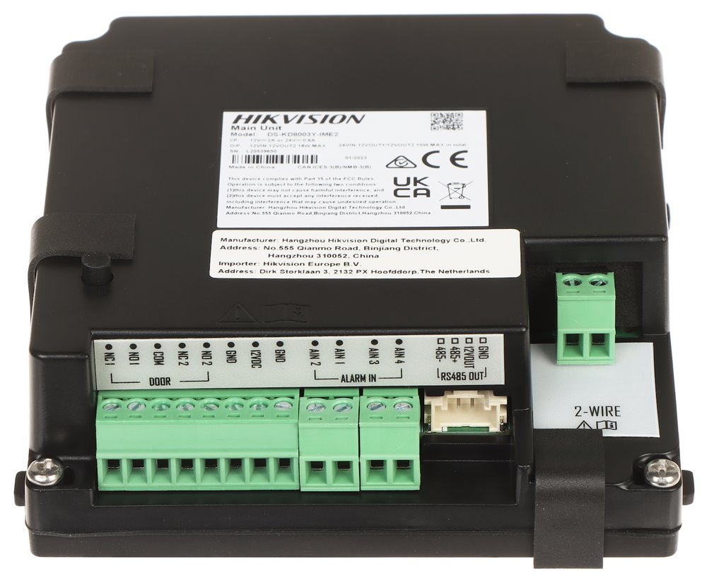Rozhraní: 1× připojení modulu (RS-485), 2× relé (ovládání zámku dveří), 2× dveřní kontakt, 1× tamper, 4× alarm vstup, 1× 2drát rozhraní