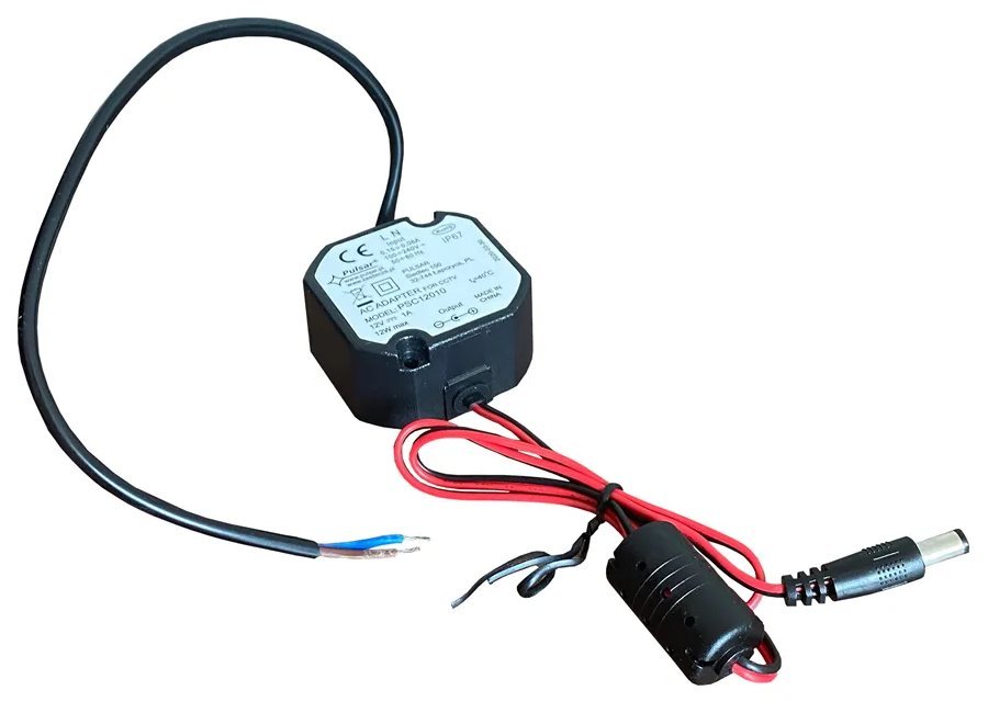 Stabilizovaný pulzní zdroj DC 12 V (1 A) s účinností 77 % je určený pro instalaci do elektrikářské krabice. Samozřejmostí je ochrana proti přetížení a zkratu.