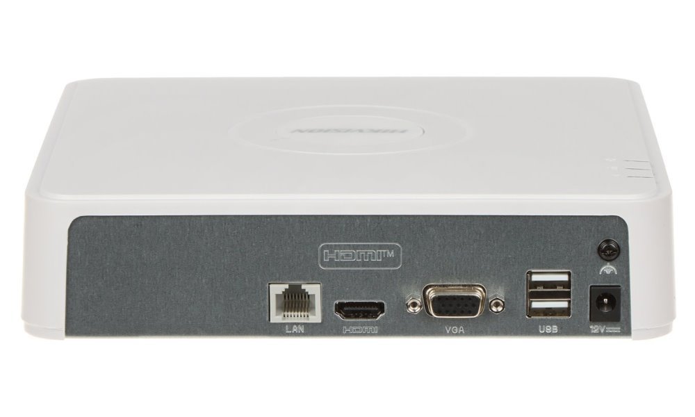 Záznamové zařízení pro 4 IP kamery. Povoleny kombinace různých rozlišení do 6 Mpx a datový tok do 60 Mb/s. Konfigurovatelné chytré funkce speciální kamery, jako je detekce překročení čáry nebo narušení. Zařízení podporuje také dekódování H.265+, díky kterému můžete ušetřit až 75 % datového objemu. K dispozici je jedna pozice pro SATA pevný disk s kapacitou až 6 TB. Aplikace Hik-Connect umožňuje snadnou správu sítě.