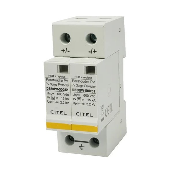 Svodič přepětí speciálně vyvinutý pro ochranu fotovoltaických zařízení před přepětím. Svodiče přepětí DS 50PVS jsou dvoudílné svodiče typu 2 (s modulární strukturou) a montují se na DIN lištu. Výměnný modul umožňuje snadnou výměnu poškozeného dílu bez nutnosti demontáže připojených vodičů.