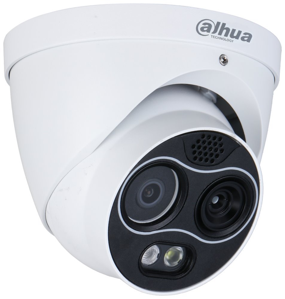 Bezpečnostní termální venkovní IP kamera s duálním snímáním v termo (256 × 192) a vizuální (4 Mpx - 2336 × 1752 px) oblasti. Rozlišovací schopnost pod 40 mK, objektiv f = 7 mm (24°), vizuální f = 8 mm (33,4°), IR přísvit do 30 m, 16× digitální zoom, funkce Digital Detail Enhancement (DDE), Turret/Eyeball provedení.