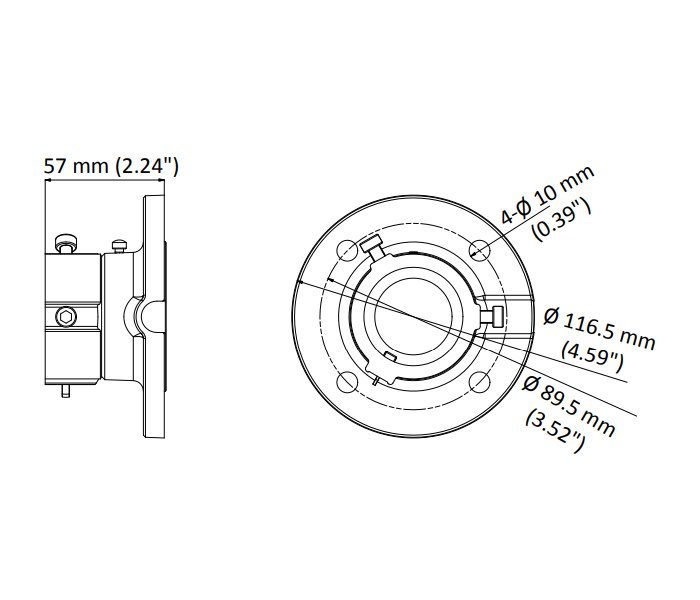 Držák pro montáž PTZ dome kamery na strop, zatížitelnost 10 kg. Držák je vhodný pro vnitřní i venkovní použití a měl by být instalován na rovnou stěnu. Zeď musí unést více než 3krát větší hmotnost, než je celková hmotnost kamery a držáku.