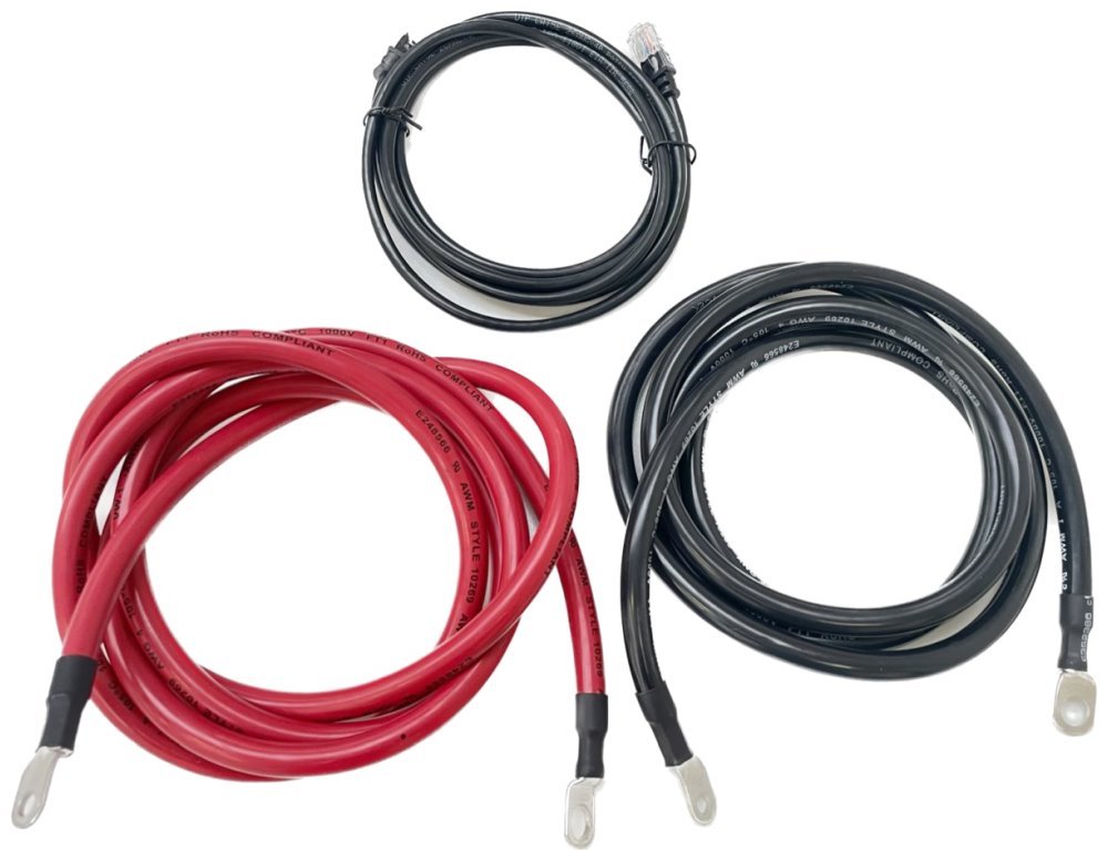 Sada dvou silových propojovacích kabelů slouží k paralelnímu propojení kladného i záporného pólu DEYE SE-G5.1 baterií. Sada obsahuje i datový kabel s RJ-45 konektory na obou koncích. Veškeré kabely mají délku 2 m, silové mají průřez 4AWG (21 mm2), barvu dle použití a jsou zakončeny na obou koncích oky s průměrem 6 a 10 mm.