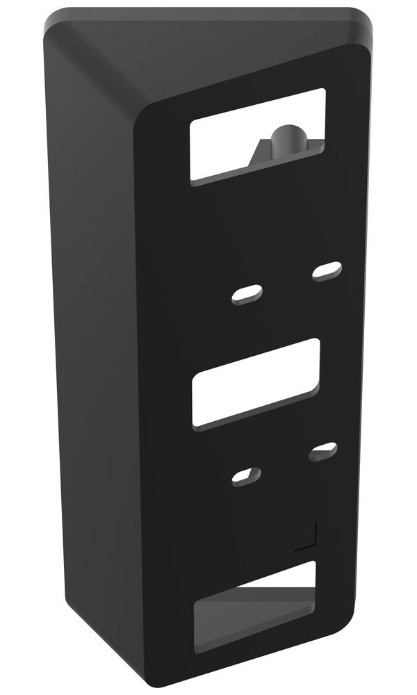 Držák je vyroben z kvalitního polykarbonátu (PC) s příměsí 10 % sklolaminátových vláken, což zajišťuje vysokou mechanickou odolnost a dlouhodobou životnost i v náročných venkovních podmínkách. Konstrukce držáku umožňuje nastavení dveřní stanice v úhlu 30° pro optimální zorný úhel kamery a pohodlnější používání.