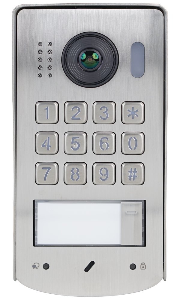 Moderní dveřní stanice s 2Mpx kamerou, RFID čtečkou a kovovou klávesnicí pro komplexní zabezpečení vchodu.