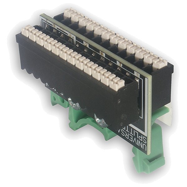 Univerzální rozdělovač se svorkovnicemi pro montáž na DIN lištu pomáhá organizovat kabeláž v komplexních instalacích s využitím zařízení LAN ovladač.