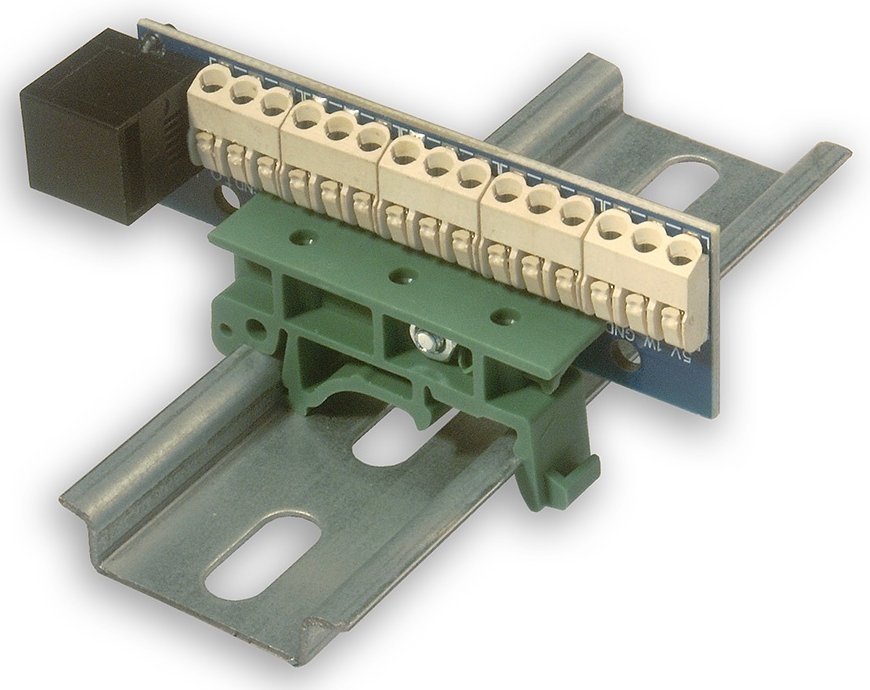 - Rozdělení 1-Wire sběrnice na 5 samostatných portů se svorkovnicí
